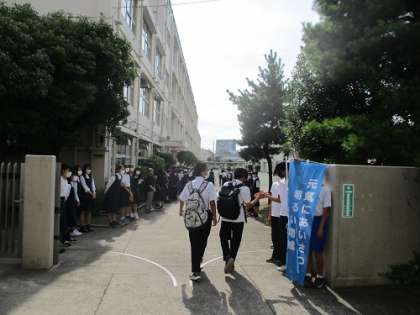 今朝は、約90名の生徒が集まりました!元気よく「おはようございます!」の挨拶が響いていました。