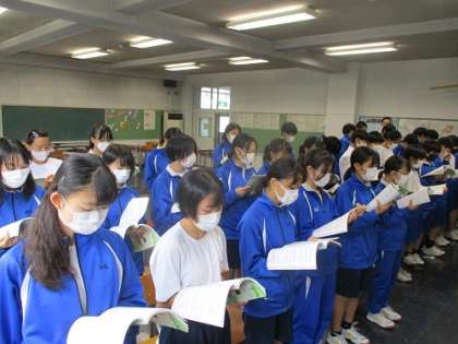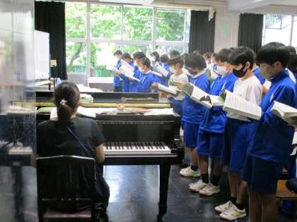 男子も女子も、音楽科の先生のピアノにそって、真剣に、丁寧に歌っています。