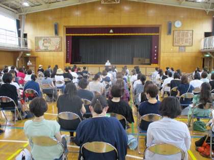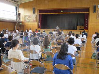保護者会では、校長挨拶の後、夏休みの生活や2学期の予定、評価、評定のお話しをさせていただきました。