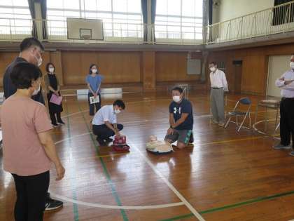 明日からいよいよ2学期です。先生方は、そのための準備として、本日は会議をたくさん行いました。それに合わせて、「救命救急講習」も実施されました。アレルギー対応と、AEDを用いた心肺蘇生です。いざという時に、みなさんの大切な命を守れるように。