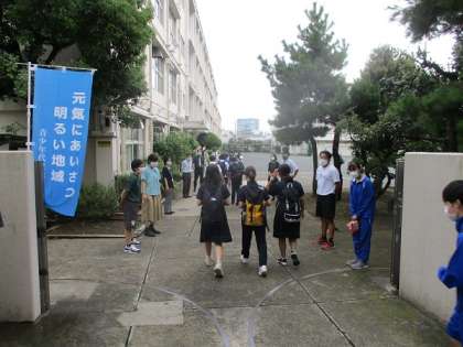 普段は、風紀委員や生徒会本部役員の生徒が挨拶当番で正門に立っていますが、定期考査の1週間前からは勉強に集中してもらうため、朝の当番はありません。