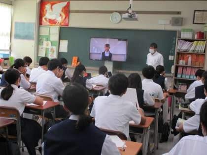 今朝から3日間、朝読書の時間を利用して、各学級で、演説動画を視聴しました。今日は会長と副会長候補の3名の動画でした。
