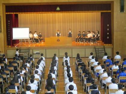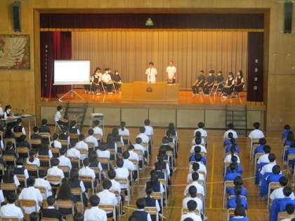 舞台上で話す候補者の様子からは、まさに富士中のこれからを引っ張っていく頼もしさを感じました。応援者も候補者のために、しっかりと準備し、演説する様子も大変立派。聴いている生徒たちの姿勢も立派。全校生徒が集まった時に、富士中生のレベルの高さを感じます!