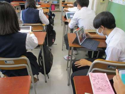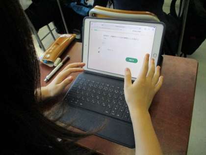 今朝の3年生は、Qubena(キュビナ)という学習ソフトを使って、学習をすすめました。