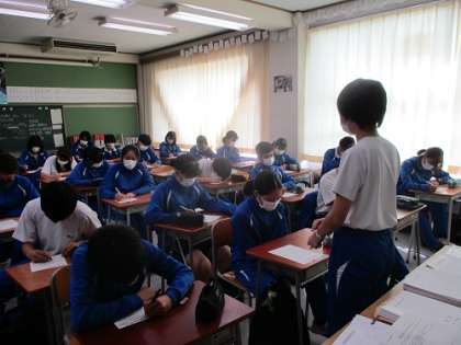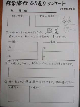 3年生は1時間目、修学旅行実行委員が作成した、振り返りアンケートを記入しました。