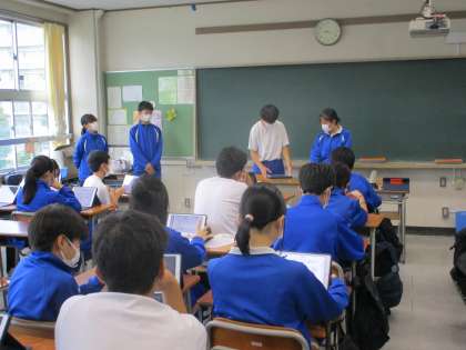 後期の生徒会本部役員、各種委員会の委員の任命が行われ、代表して生徒会長と各種委員会の委員長が壇上で意気込みを話しました。
