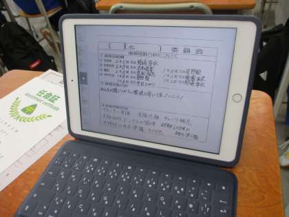 教室に戻った後は、タブレットに配信された議案書の読み合わせと、各委員会へ、質問、要望を考える時間です。SDGsの観点から、少しでも紙の使用を減らしていく工夫がされています。
