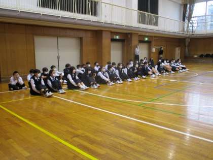 6時間目の練習では、3年A組の体育館練習の様子を1年C組が見学しにきていました。