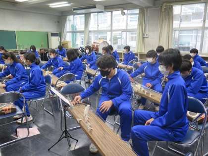 本日の3年生の音楽の授業は和楽器、「箏」の授業でした。3年間学習したことと関連付けつつ、新しい技法も使って「もののけ姫」の練習に取り組みました。近隣の方々に寄贈していただいた楽器も使わせて頂いています。地域の方々のおかげで富士中の教育活動を充実させることができています。ありがとうございます!