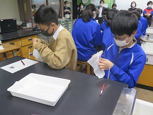 本日の5時間目、理科の岡本先生による研究授業が2年A組で行われました。