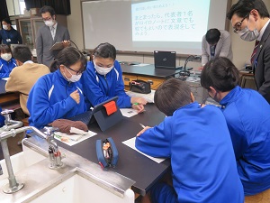 生徒一人一人のために岡本先生が全て実験用具を手作りして準備したこの授業。生徒たちの学習を少しでも充実させたいという岡本先生の情熱が垣間見える素晴らしい授業でした。2A生の生徒もとても集中して、実験や考察に取り組み、ロイロノートでお互いの意見をしっかりと交換していました。