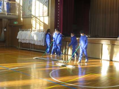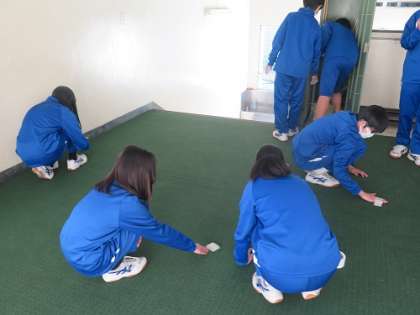 今朝、本校の体育館で1年生のクリーン作戦が行われました。日頃、授業や部活動、行事等で使っている体育館を美会員を中心に、ボランティアの生徒たちが、朝からピカピカにしていきました。気持ちのいい1日のスタートとなりました。