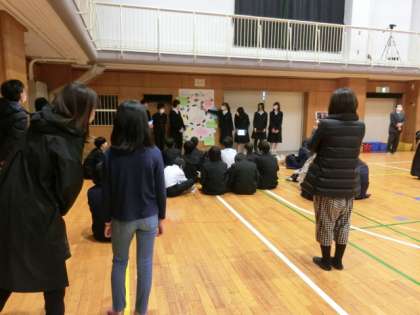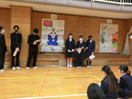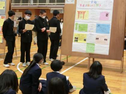 1月27日(金)に行われた鎌倉校外学習について、体育館にて班員と共に作成した新聞をもとにプレゼンテーションを行いました。自作でのCM付きもありとてもクオリティが高く見ごたえがありました。