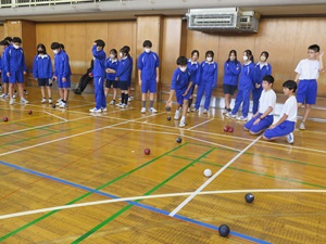 24日(金)の5,6校時に、本校の体育館で「2020レガシー推進授業」が行われました。これは、東京オリンピック・パラリンピックの記憶を風化させないようにしていこうという取り組みです。富士中学校では、「ボッチャ」の日本代表監督をお招きして、特別授業をしていただきました。