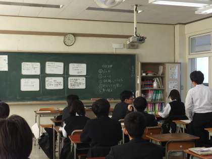 年度当初にクラス全員で考えた学級目標に対して現在どれくらい達成できているのか。クラスとしてどんなことを改善すれば100%達成できたことになるのかをそれぞれ話し合いました。生徒によって20%台から100%まで考え方は様々で、お互いに理由や考え方を共有していました。
