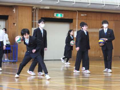 今日は1年A組とD組が挑戦しましたが投げるバレーボールが思ったより弾んだり、ピンが倒れなかったりと苦戦している様子でした。