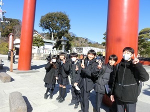 1月26日(金)に、2学年の鎌倉校外学習がありました。空は抜けるように青く、気温もぽかぽかで、絶好の校外学習日和となりました。高台からは、美しい海や富士山も見ることができた生徒もチラホラ。お昼ご飯もワイワイととても楽しそうに食べていました。昨年度の「都内巡り校外学習」での経験を活かし、しっかりとコースをめぐり、迷子なども無く、充実した校外学習となしました。来年度の修学旅行では、更なる高みを目指していきましょう!