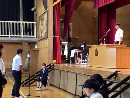 金曜日の3・4時間目に前期生徒総会が行われました。