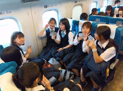 無事に品川駅を出発しました。車内ではカードゲームなどで楽しそうに過ごしています。