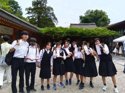 春日大社でおみくじをひく面々。中には大吉が出た生徒も!みんなの 笑顔が見れて嬉しい限りです。