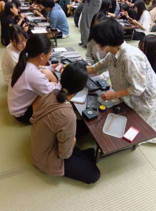 今度はB組女子とC組が象嵌体験学習です。