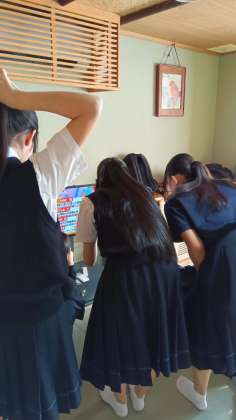 荷造りや身だしなみ等が一段落した女子の部屋では、どこの部屋でも、朝の星座占いランキングチェックをしていました。