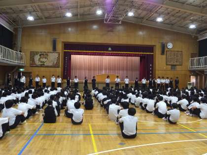 最後に3年生の代表生徒からは体育科の先生と引率の先生への感謝の言葉があり、1・2年生の来年度の頑張りにエールを送りました。