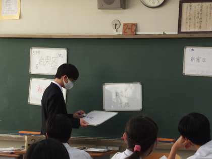 自分たちが住む東京について知ることを目的として事前学習では23区+1市を振り分け、班ごとにPowerPointで発表を行います。
