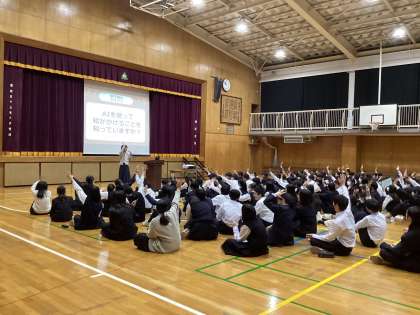 株式会社教育ネットの講師の方に来ていただき、1年生はネットリテラシーについて学びました。インターネットを使った情報発信の仕組みの特徴や肖像権についてのトラブル事例を通して、日常で起こりうる出来事について問題点や情報社会との向き合い方について考えました。AI画像やChatGPTなどの情報技術についての話もありました。代表生徒からは「情報モラルについて学ぶことができ、今日学んだことをこれからの生活に活かしていきたいです。」と感想をお礼を込めて講師の方へ伝えていました。