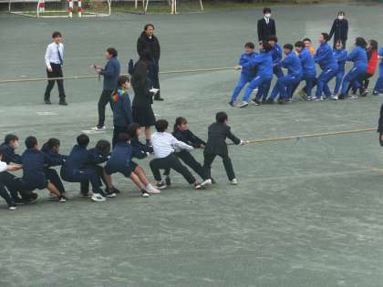 本日より生徒会主催の綱引き大会が始まりました。昼休みを利用して毎日2試合行われます。