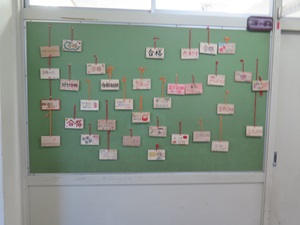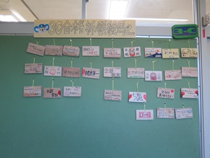 3年生が技術科の授業で廃材となった木材を使って、「合格祈願絵馬」を作成しました。それぞれ、仲間への温かく、力強いメッセージが込められています。いよいよ受験シーズンに突入します。頑張れ、3年生!!