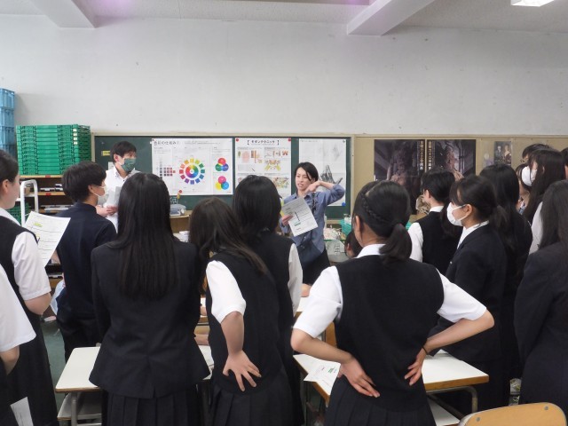 明日から始まる模造紙係の活動に向けて昼休みに係生徒が集められ絵の具の使い方や作成期間の説明が行われました。