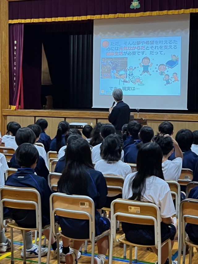 1年生が3時間目に、生活リズムにまつわる内容について講師の先生からご指導いただきました。
