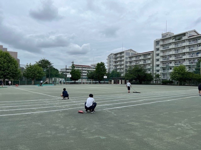明日は予行練習。各担当が準備をした後、最後に、実行委員のみんなが、トラックを整備しました。お疲れ様。