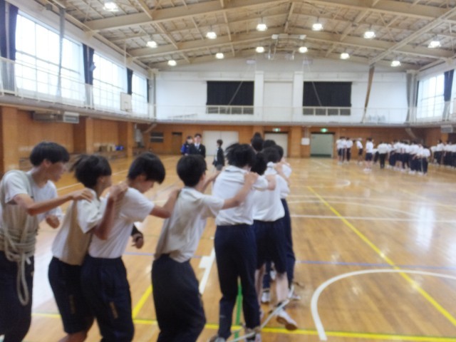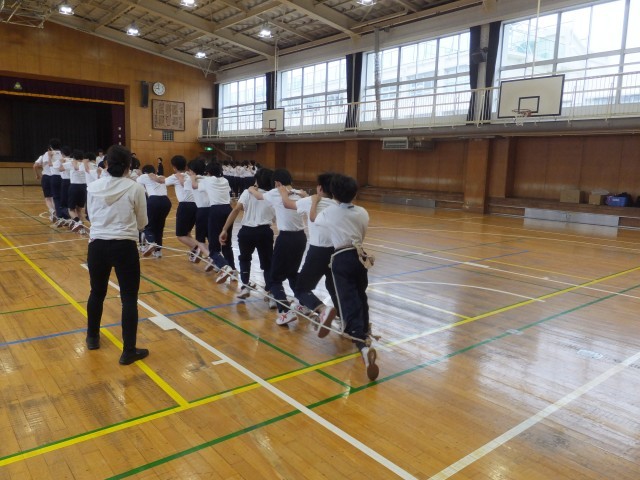3年生は1時間目に体育館を使って学年種目「大ムカデ」の練習を行いました。