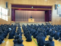 今朝の生徒朝礼は、生徒会副会長から定期テスト後の過ごし方や心構えについて、委員...