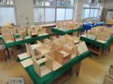 木工室には1、2年生の技術科の作品が並んでいます。1年生は木材で「収納プロデュ...