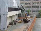 体育館の耐震工事が進んでいます。工事中の体育の授業は校庭で行うか、教室で保健を...