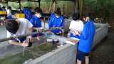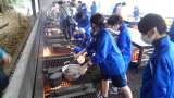 班で力を合わせて、カレーを作り始めました。火おこし、野菜切り、お米洗いと分担をし...