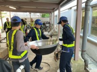 避難場所の設営、避難所になった時の掲示の作業。