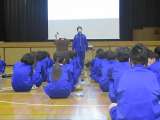 今日の6校時に1年生の明日の校外学習の前日指導が、体育館で行われました。各係長...