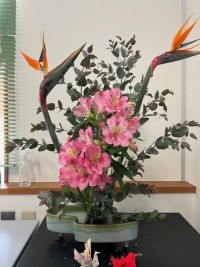 華道部が生けた作品が、校内にいろどりを添えています。 校長室にも飾られています...