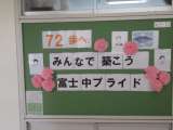 PTA室の前には「72歩へ みんなで築こう富士中プライド」の掲示があります。富...