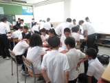 1年生の国語の授業での新聞づくりに、2年生がアドバイスに来ました。新聞のテーマ...