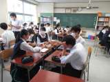 学校通常再開の日から、給食も始まっています。配膳には、先生が率先して関わり、班...
