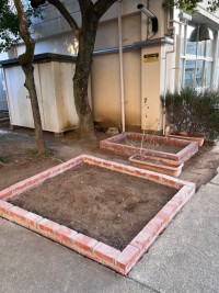 正門を入ってすぐの花壇が生まれ変わりました。主事さんがレンガを組んで立派な花壇を作ってくれました。 次は土の改良です。そのあと、苗や球根の植え付けや種まき。今まではヒマワリなど1年草を植えていました...