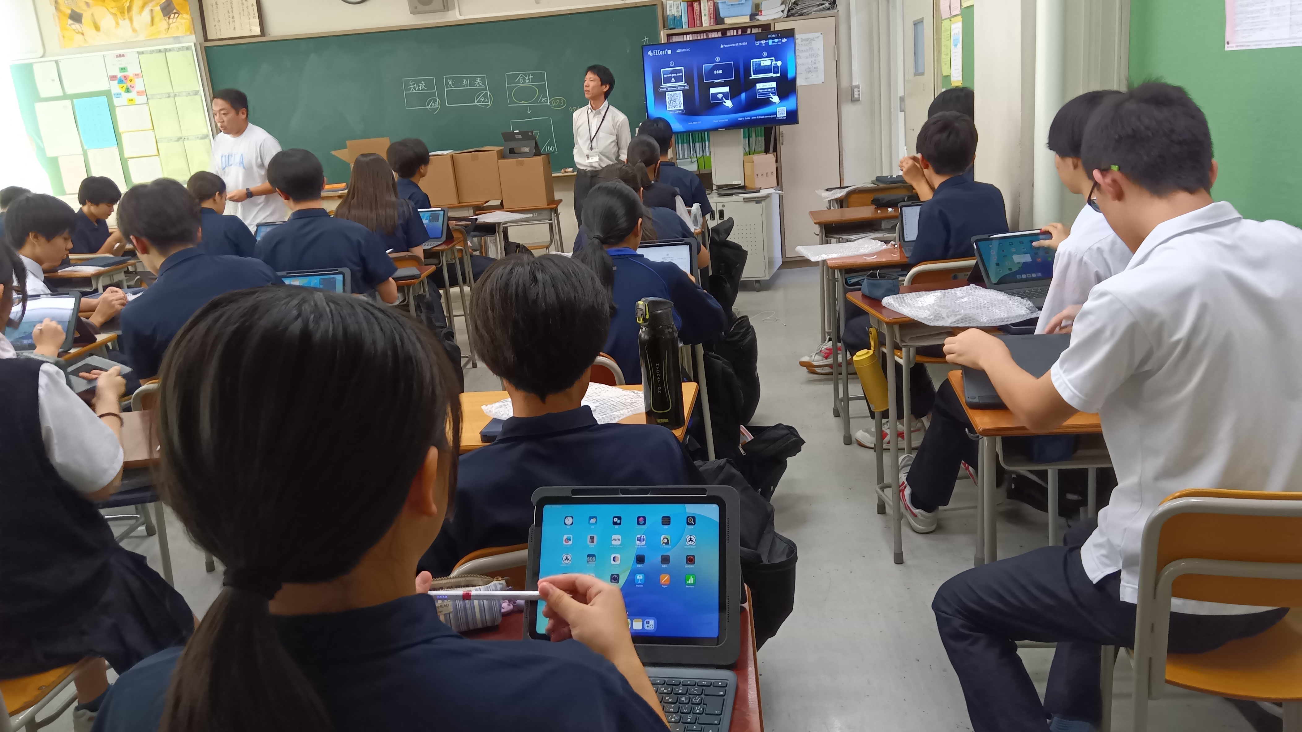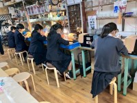 まるで職人のように作業しているこの班は、「江戸切子」の体験をしています。「江戸切子は江戸の伝統工芸だが、他の国の文化を融合して発展してきたと考える。」という仮説のもとグラスを完成させました。 果たし...