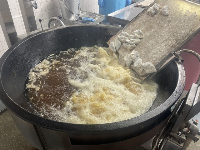 お店でも新米が並ぶようになりました。給食でも新米が始まっています!!今日は白ごはんで新米の味を存分に味わいました。さばの竜田揚げも魚に脂がのっていて大好評でした!!給食では揚げ物をするのにこめ油の一斗缶を約4缶使用します。一度に揚げる数はものによりますが、たっぷりの油で揚げるからかカラッと揚がります。