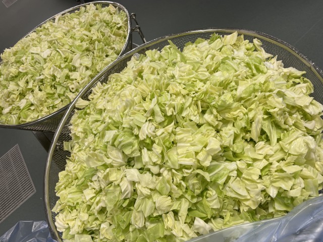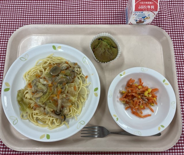 今日は大人気のメニューでした。スパゲティボンゴレのソースに使ったキャベツは、せたがやそだち野菜です。葉がやわらかくて甘いキャベツでした。