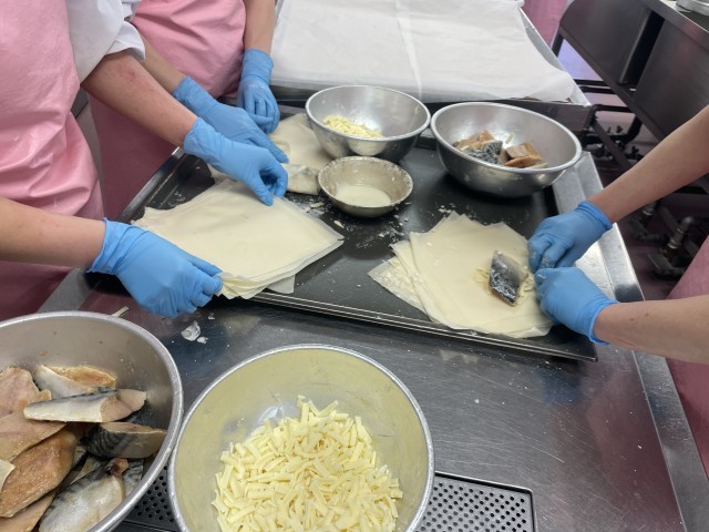 魚のチーズ包み揚げは、名前の通り春巻きの皮で下味をつけたさばとチーズを包んで揚げています。魚が苦手な人にもおすすめな料理ですが、食べてくれたでしょうか?まずは一口、チャレンジしてもらえたら嬉しいです!おかずがしっかり味で、白いごはんが進みました。